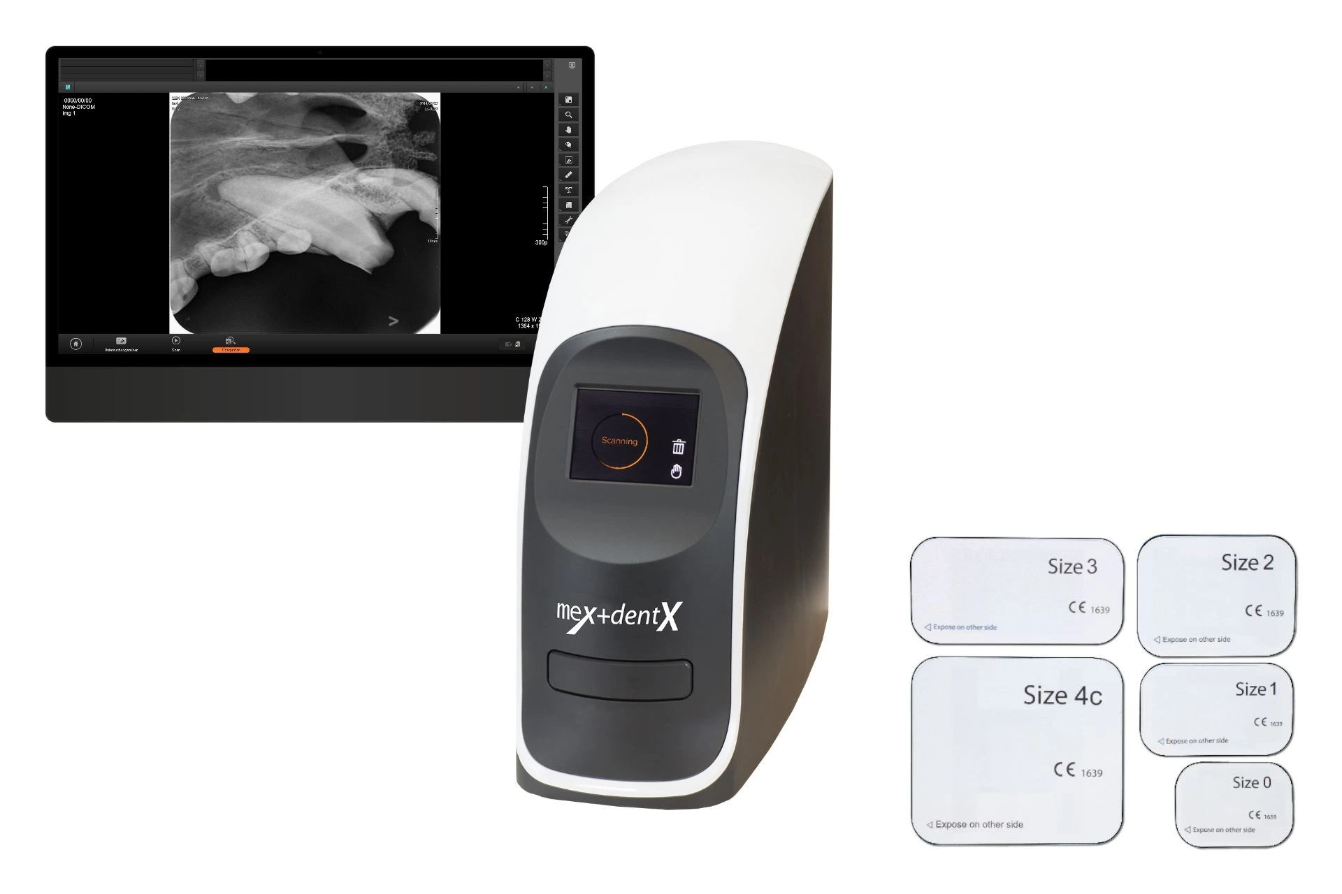 meX + dentX to kompaktowy czytnik płyt obrazowych (CR) stworzony z myślą o stomatologii weterynaryjnej. Zapewnia wysokiej jakości obrazy RTG z pełnym zakresem odcieni szarości, a dzięki niewielkim rozmiarom i wadze jedynie 5,5 kg idealnie nadaje się do pracy w nawet najmniejszych gabinetach i lecznicach.