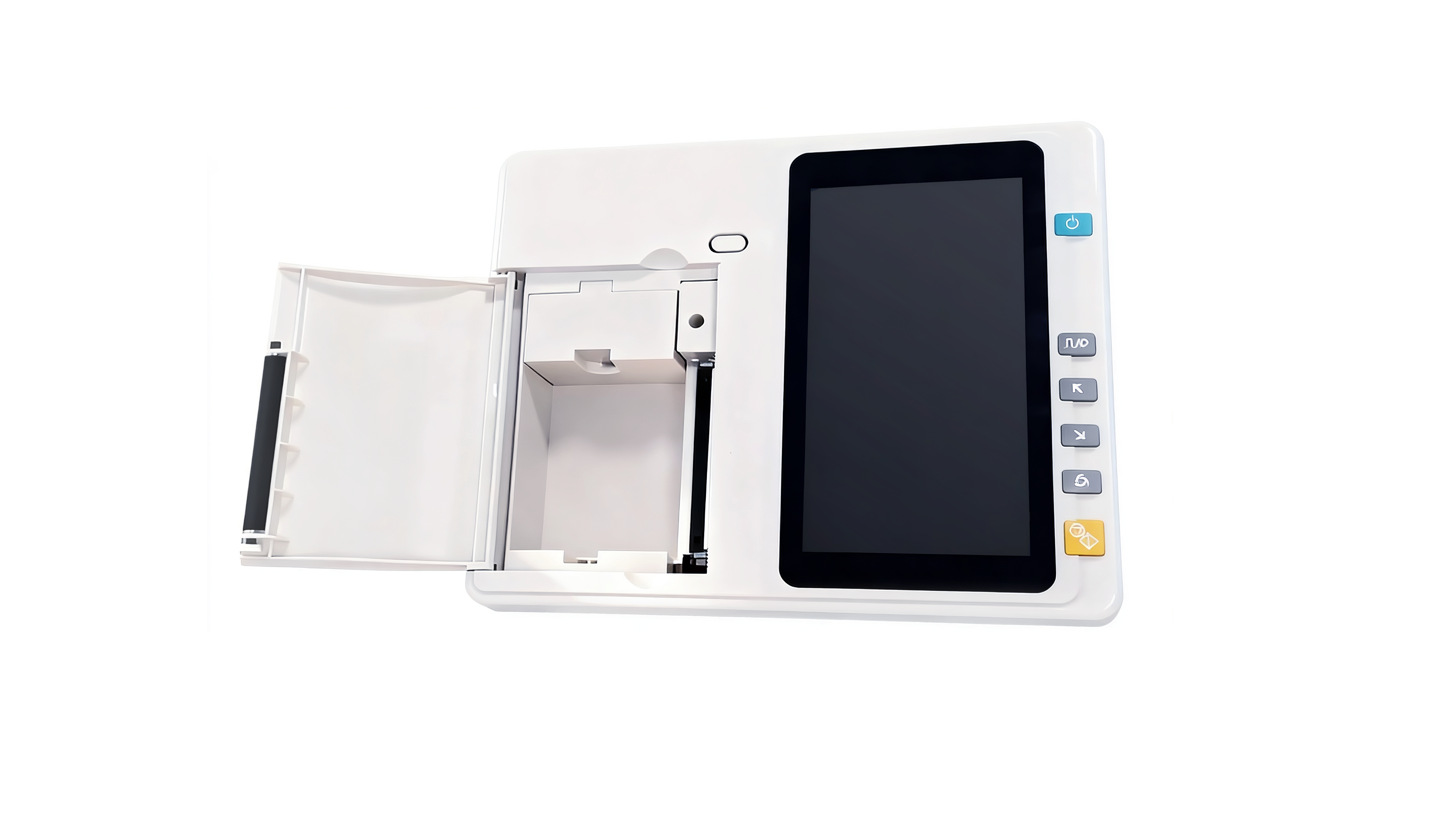 VET-EG3 to nowoczesny, 12-kanałowy elektrokardiograf weterynaryjny, zaprojektowany do szybkiej i czytelnej diagnostyki pracy serca. Urządzenie umożliwia jednoczesną rejestrację 12 odprowadzeń oraz prezentację sygnału na ekranie w formie pełnoekranowego podglądu 12-kanałowych przebiegów EKG, co ułatwia analizę i skraca czas badania.