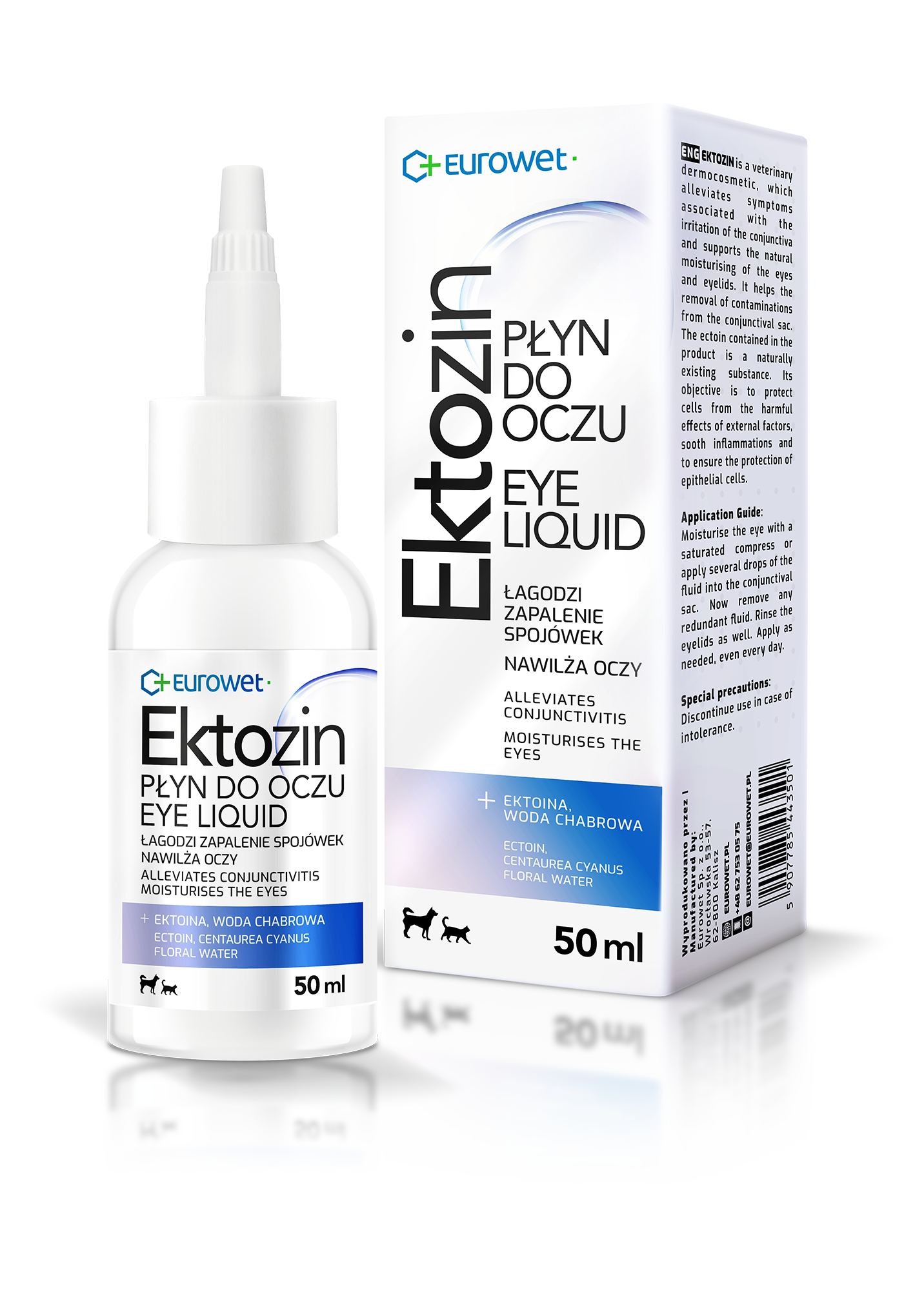 Ektozin to specjalistyczny dermokosmetyk weterynaryjny przeznaczony do codziennej higieny oczu i powiek u zwierząt domowych. Preparat skutecznie łagodzi objawy związane z podrażnieniem spojówek, wspomaga naturalne nawilżenie oraz pomaga usuwać zanieczyszczenia z worka spojówkowego.