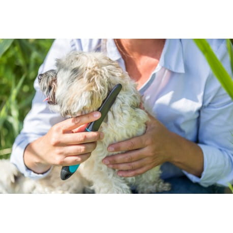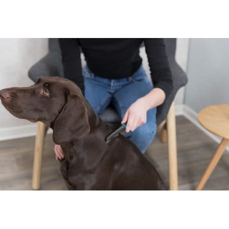 Grzebień przeciwpchelny przeznaczony do wykrywania pcheł i wszy u psów. Wyposażony w wygodny uchwyt z gumy lub metalu, zapewnia pewny chwyt i komfort podczas czesania. Umożliwia szybkie zidentyfikowanie pasożytów i skuteczną pielęgnację sierści. Odpowiedni do codziennego użytku oraz wszystkich rodzajów sierści (1–5).