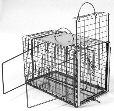 Uchwyty panelu dociskowego składają się na płasko i blokują klipsem, co ułatwia przechowywanie klatki, gdy panel nie jest używany. Model 308SQ posiada również zdejmowane drzwi przesuwne, kompatybilne z tylnymi drzwiami przesuwnymi pułapek o wymiarach 15" × 20", co usprawnia transfer zwierzęcia z pułapki do klatki.