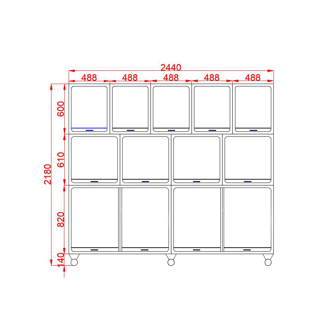 Całkowite wymiary konstrukcji wynoszą 244 x 70 x 218 cm, co zapewnia dużą powierzchnię użytkową i pozwala na komfortowe rozmieszczenie wszystkich wnęk. Górna klatka o wymiarach 48,8 x 70 x 60 cm, środkowa klatka 61 x 70 x 61 cm oraz dolna klatka 122 x 70 x 82 cm tworzą praktyczny i przemyślany system modułowy. Dzięki temu klatka stal nierdzewna 13-komorowa umożliwia wygodne wykorzystanie dostępnej przestrzeni oraz dobrą organizację poszczególnych segmentów.