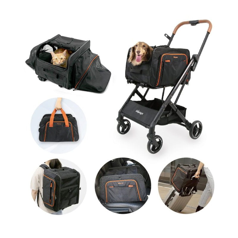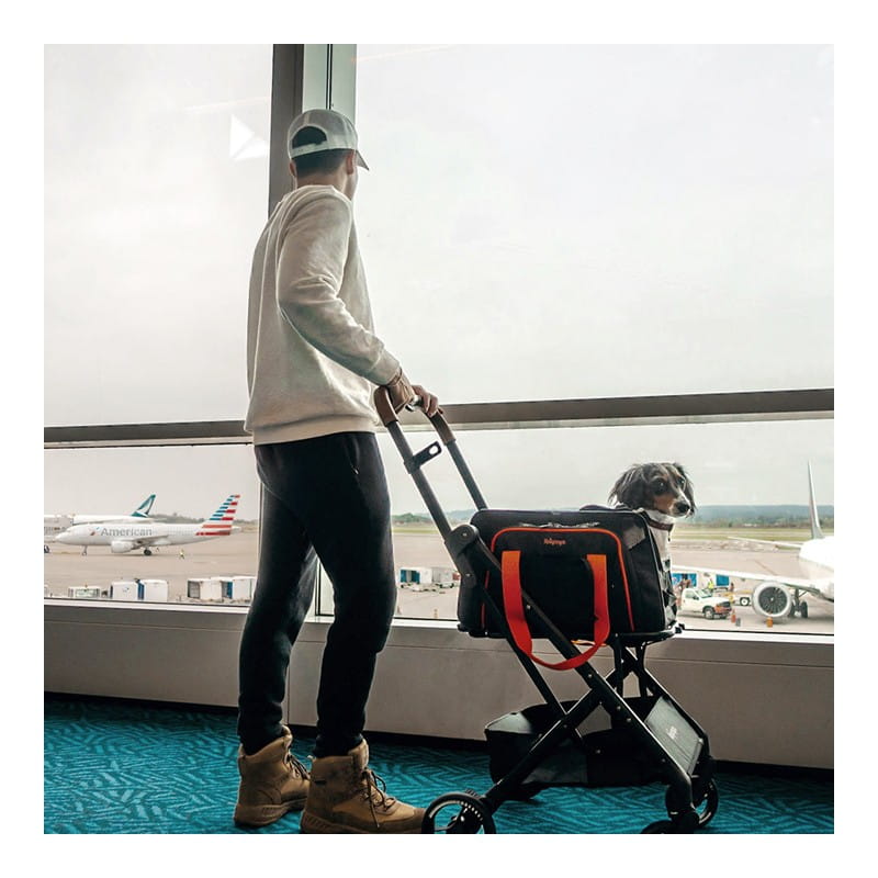 Mobilny zestaw dla psa/kota do 7 kg: po odłączeniu od stelaża torba JetPaw służy jako plecak lub transporter (rozmiary akceptowane przez większość linii lotniczych). Mechanizm składania jedną ręką, duże wejście dla pupila i możliwość mocowania na walizce podnoszą wygodę podróży. Lekka, trwała rama aluminiowa, wodoodporny materiał PVC oraz duże okna z siatki zapewniają wentylację; koła kompozytowe (bezobsługowe) z amortyzacją i podwójny hamulec dbają o płynną i bezpieczną jazdę. Ergonomiczne, wyściełane szelki z pasem piersiowym stabilizują torbę w trybie plecaka; tylna kieszeń ułatwia przechowywanie drobiazgów.