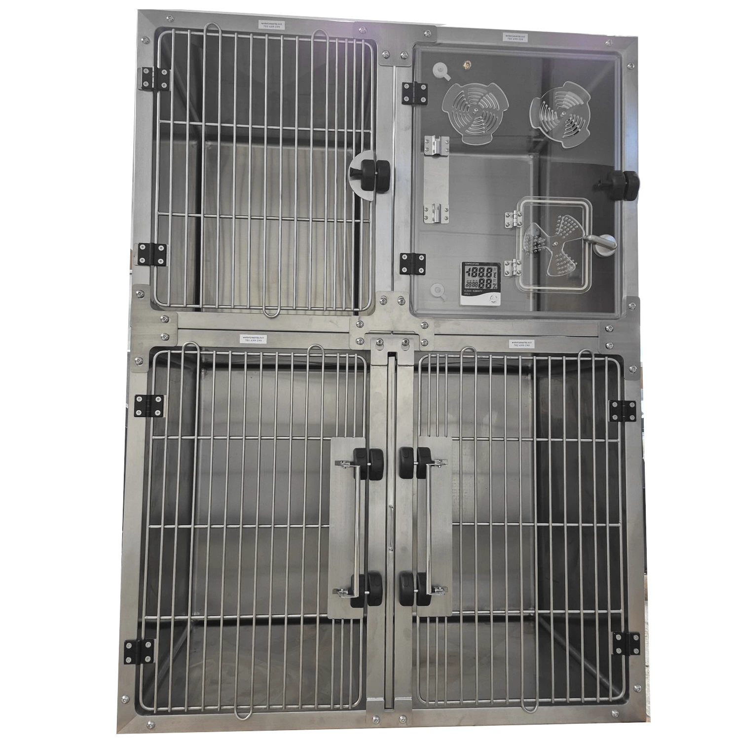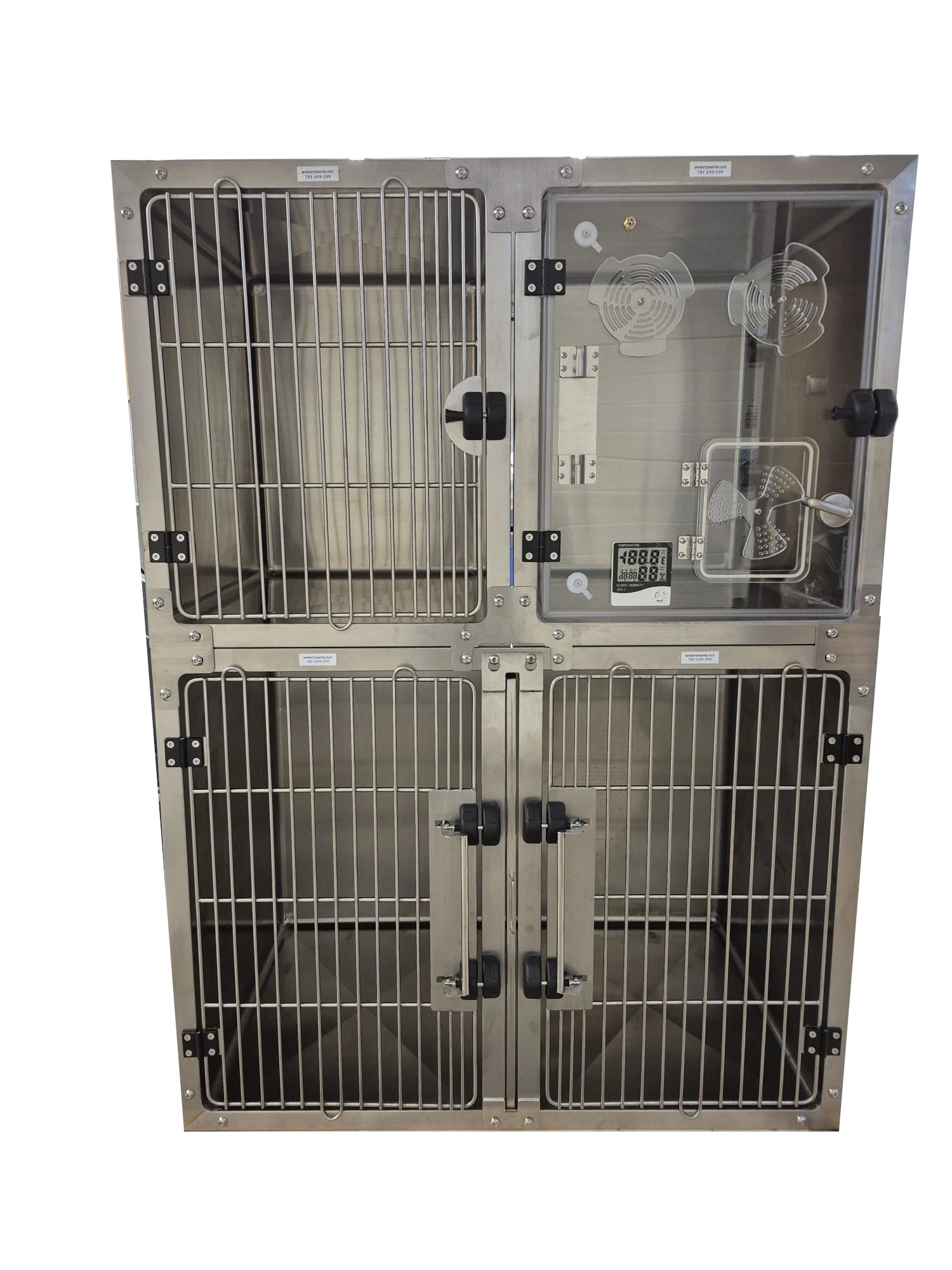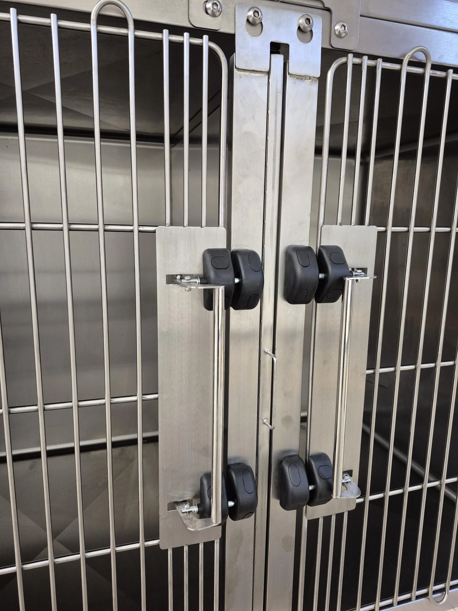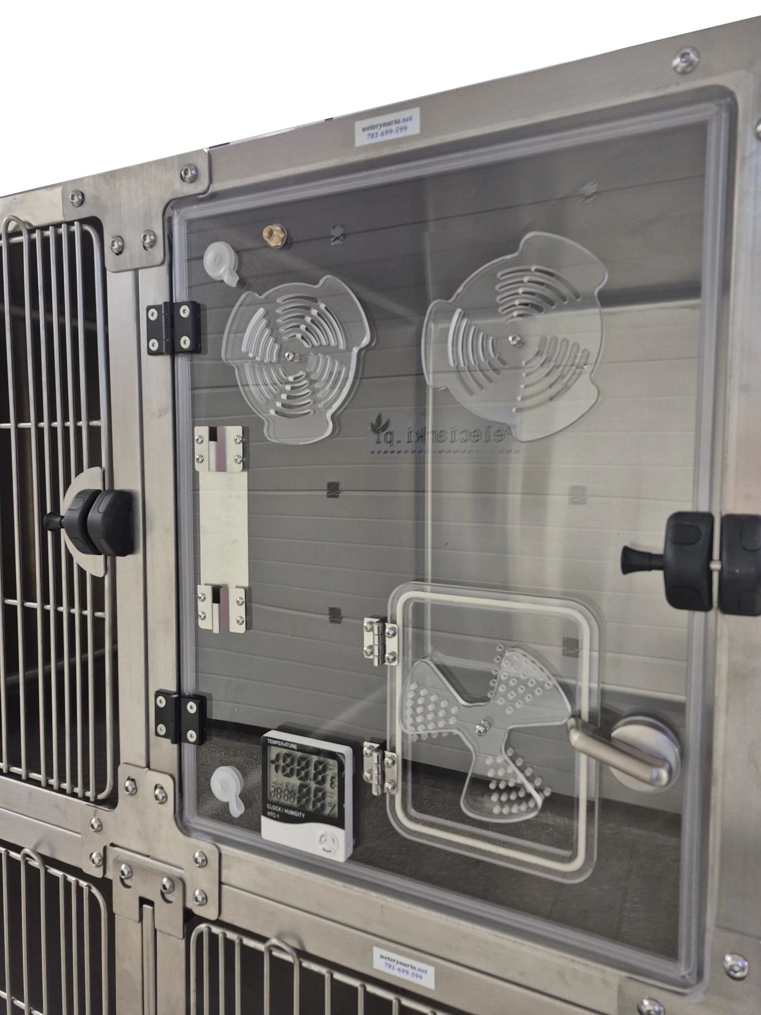 Kompaktowy, modułowy zestaw klatek do hospitalizacji i tlenoterapii małych zwierząt, wykonany w całości ze stali nierdzewnej 304. Zestaw łączy wygodę codziennej pracy (łatwe mycie, wysoka trwałość, bezpieczne zamykanie) z możliwością prowadzenia tlenoterapii i nebulizacji w dedykowanej klatce tlenowej. Drzwi wyposażono w system magnetyczny ułatwiający szybkie, pewne domknięcie; w strefie zamka zastosowano zagęszczone pręty (3–4 mm) dla dodatkowego bezpieczeństwa.